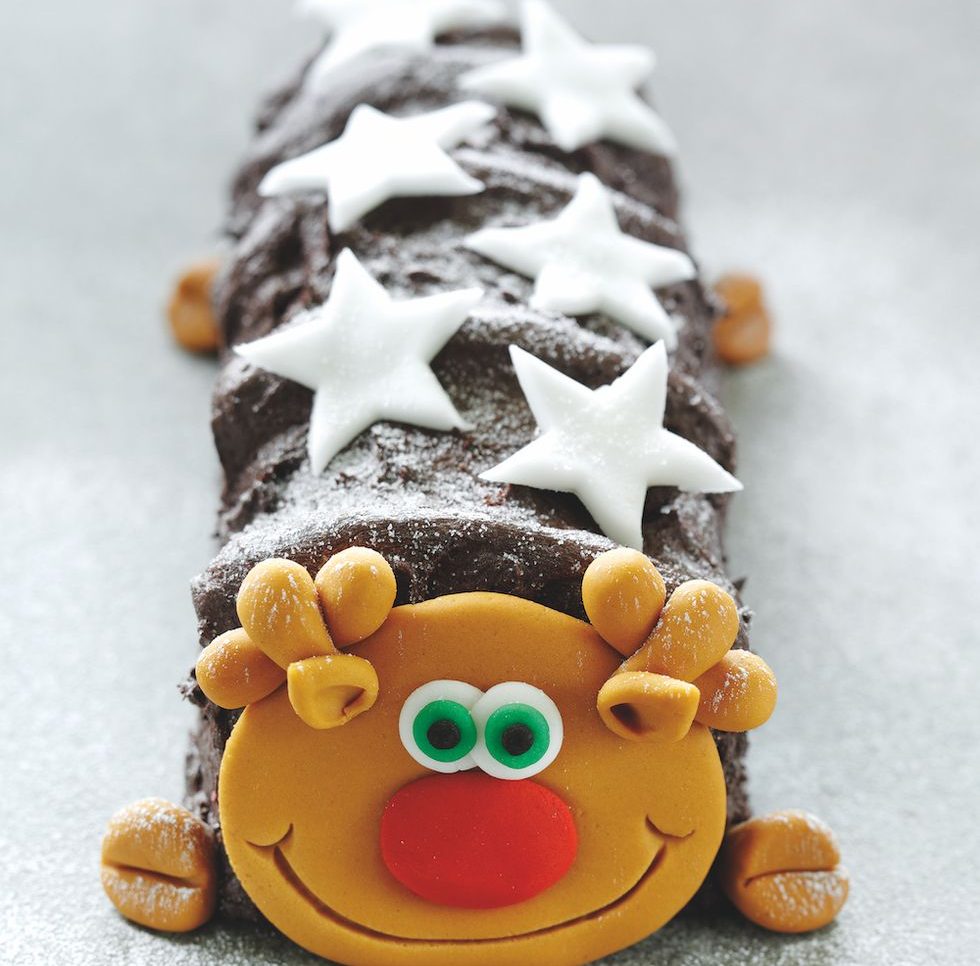 While Colin is topped with Smarties-style sweets, Roddy has a reindeer face complete with red nose, a dusting of icing sugar and is decorated with Christmasssy stars.
