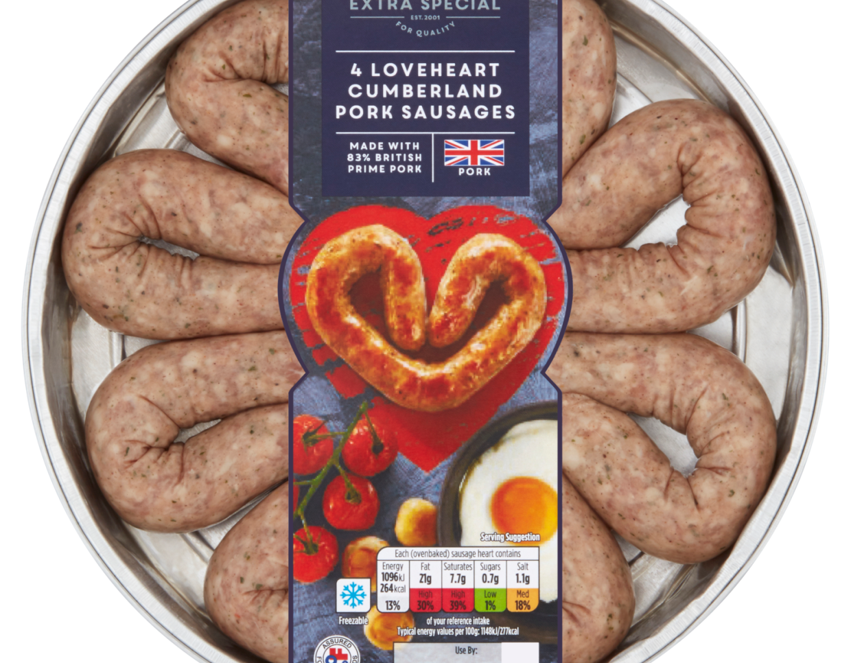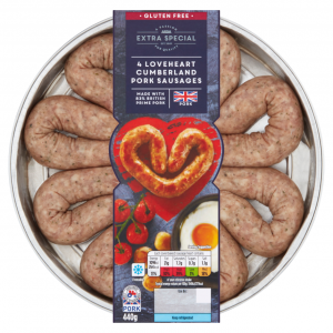 The new Extra Special Love Heart Cumberland Sausage comprises four pork sausages shaped into romantic hearts.