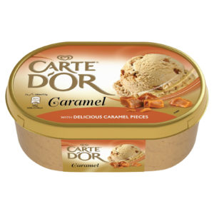 It features smooth caramel flavour ice cream infused with caramel pieces.