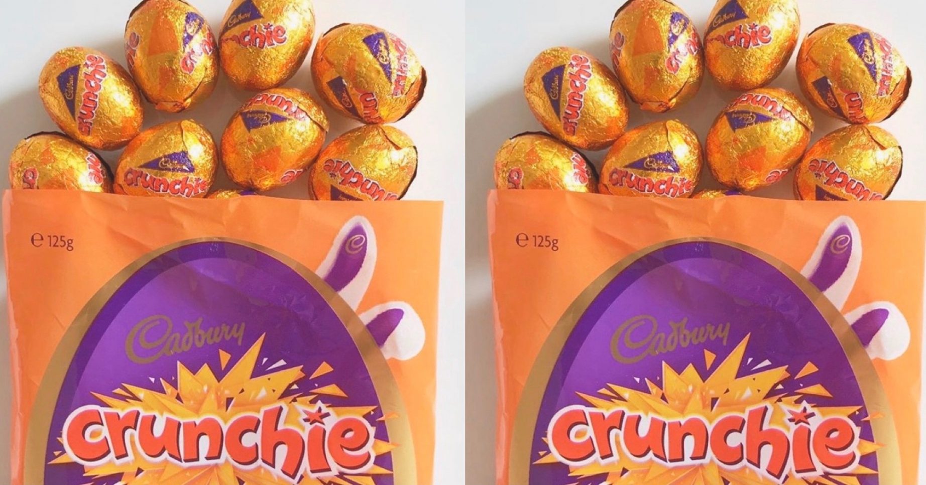 The eggs are made from solid milk chocolate that is studded with Cadbury Crunchie pieces.