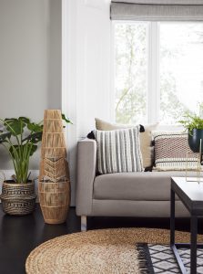 Raffia woven plants holders and wicker lampshades add a natural element.