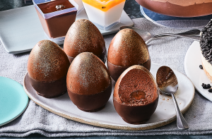“Delectable layers of chocolate custard, sponge and chocolate mousse topped with whipped cream and a juicy flavoured orange ‘egg yolk’ glaze,” said a rep, describing the Easter treat.