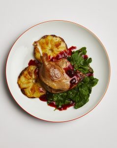 Slow-cooked duck leg, steak frites with garlic butter and roasted chicken are the options for meat eaters.