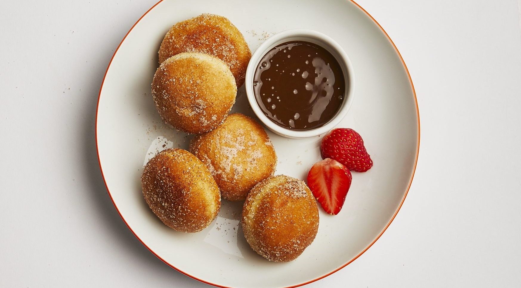 Mini doughnuts served with a salted caramel or dark chocolate dipping sauce is the obvious choice for dessert.