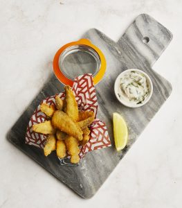 To start, enjoy the baby carrot and shallot tatin, garlic mushrooms served on sourdough bread, chicken liver pate or breaded whitebait.