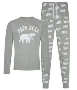With long-sleeved grey tops – complete with a furry polar bear on the front – and elasticated cotton bottoms, they’re perfect for lounging around the house this festive season.