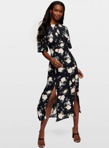 You can pick up the brand’s pretty Black Floral Flutter Sleeve Mini Dress for just £19.49.