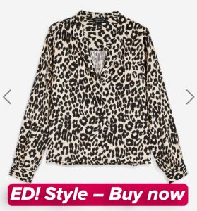 The actress has been sporting a Topshop cheetah print blouse in her recent Instagram posts.