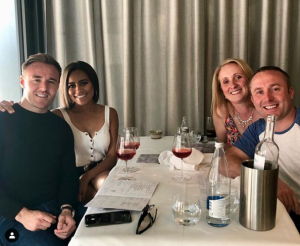 Earlier in the evening the 36-year-old actor shared a snap with his 142,000 Instagram followers of him out for dinner at posh Catalonian restaurant in Manchester with Tisha and two other people, believed to be his brother and sister-in-law.