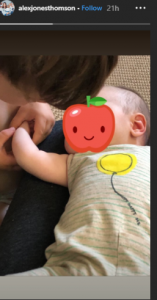 Alex obscured Kit’s expression with an apple emoji but his face can be seen turned towards his big bro.