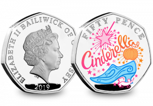 The Cinderella 50p tells the story of how the Fairy Godmother makes Cinderella’s dreams come true – turning a pumpkin and mouse into grand stage coach and driver with a tap of her wand.