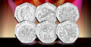 The 50p coins depict the best-loved Christmas pantos and feature scenes from Cinderella, Snow White, Jack and the Beanstalk, Aladdin and Dick Whittington.