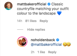 BBC Countryfile host Matt Baker, meanwhile, quipped: “Classic countryfile matching your outfit colour to the landscape 💙.” Amanda replied with two ‘crying with laughter’ emojis.