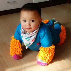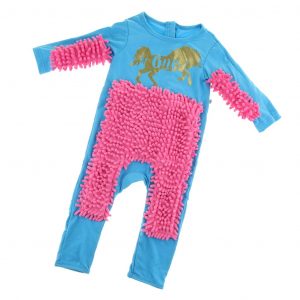 Now, while we don’t recommend you get out the Dettol floor cleaner and put your tot to work with harsh chemicals, what harm would it do if your tot simply wore the onesie and polished the floors as he or she crawled all over them?!