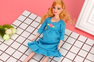 The Dinglong Real Pregnant Doll Suit Mum Doll and Dress features a doll sporting a rounded tummy.