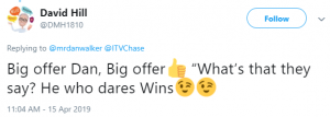 Another replied: “Big offer Dan, Big offer. What’s that they say? He who dares wins.”