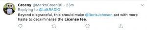 “This should make @BorisJohnson act with more haste to decriminalise the License fee.”