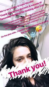 She wrote on the social media platform: “We’re very lucky to have the NHS! Thank you to the doctors and nurses at Tameside Hospital for looking after me.