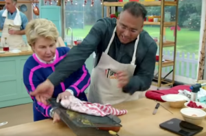 The comedienne ended up smashing fellow contestant Krishnan Guru-Murthy’s cake to pieces and blamed it on the BDL Anthem rapper.