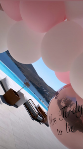 Kate’s pals were quick to share shots of their plush all-white villa, complete with pool, which they’d kitted out with pink and white balloons.