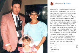 Her management said: “Everything is on hold right now until [her father] Jamie is better. But once he is, she will resume working on the album with Justin. Right now, she’s taking some time off to deal with these family issues.”