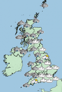 Good morning UK! Low cloud/fog on North Sea coasts mostly clearing. Sunny spells for much of England, Wales & Northern Ireland, with some showers. Heavy, potentially thundery, showers for central/southern Scotland & more persistent rain across NE Scotland. https://t.co/cQSfu1VDbo pic.twitter.com/m3piNicn8Y