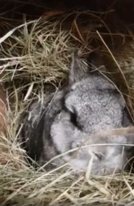 “As you can see, although he’s snug with his hay and his little house where he usually lays, he’s now just trembling and shaking in his bed.