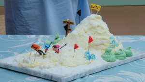 For her showstopper, Michelle created a ski-themed meringue that had co-host Paul so impressed he called it “faultless”.