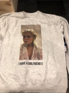 The exact terms include a hilarious jumper featuring a stern-looking Lucy, bearing the caption: “I HAVE A GIRLFRIEND X.”