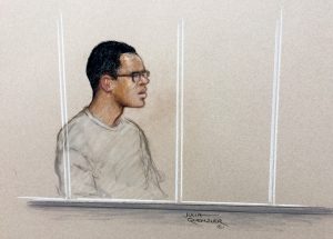 Jurors saw stills from CCTV footage on the train, which shows a pool of blood starting to flow around 16 seconds after the initial blow to the neck.
