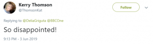 A third tweeted: “So disappointed!”