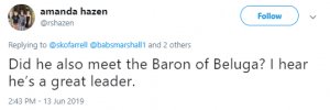Another replied: “Did he also meet the Baron of Beluga? I hear he’s a great leader.”