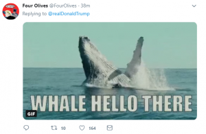 Reacting to the tweet, Donald Trump’s followers rushed to offer whale-based puns and post memes to mock the error, which appears to have since been corrected.