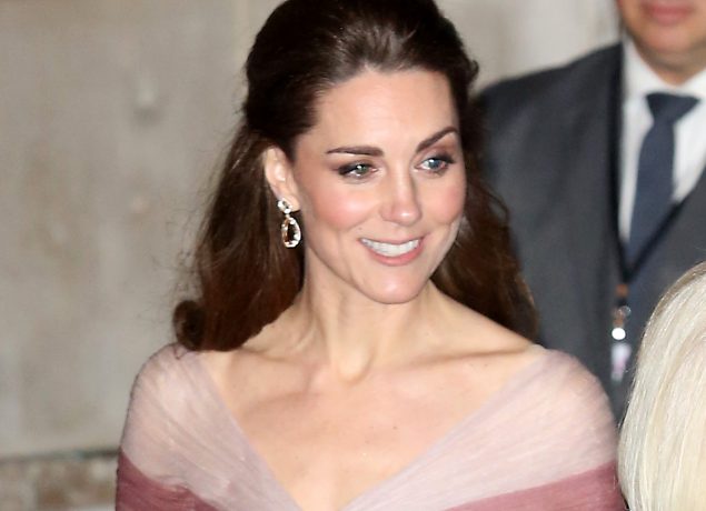 Kate beamed as she arrived at the venue. Despite the chilly night, she didn’t opt for a coat. She was also wearing her sparkling Oscar de la Renta heels, which she has worn on occasions before.
