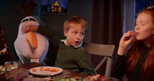 “My favourite thing about Christmas is a special meal that we share together,” she says in the ad – distributed online today – which also features a young boy and his Olaf toy.