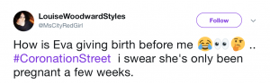 Despite this, fans took to Twitter to voice their fury at the fact the soap pregnancy seemed so short…