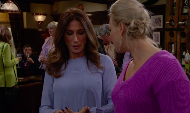 In tense scenes set in The Woolpack, Tracy Metcalfe GUESSED that her possible future mother-in-law Megan Macey had slept with Graham Foster – and Megan was mortified as she was forced to admit the truth.