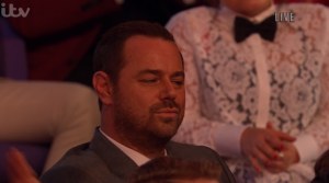 As the camera turned to Danny sitting in the audience, the star – who plays Mick Carter in the soap – didn’t too look impressed.