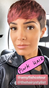 A couple of hours later, the Strictly Come Dancing star posted a picture of her new hair – which showed her fringe dyed a hot pink shade.