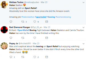 One wrote: “Feeling a bit uncomfortable watching the girls boxing”, while another said: “Am I the only person feeling slightly uncomfortable watching the ‘celebrity boxing’ on Sport Relief”.