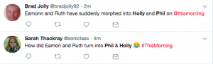 A third commented: “Eamonn and Ruth have suddenly morphed into Holly and Phil on @thismorning”.