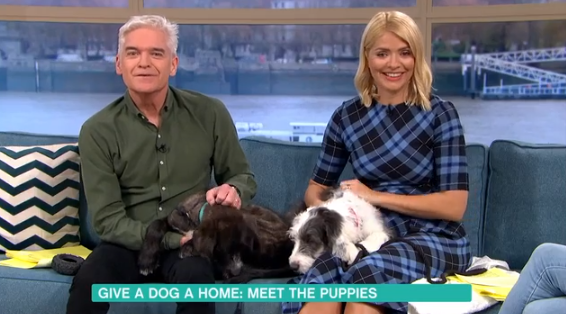 During Wednesday’s This Morning, Holly and co-star Phillip Schofield met four adorable pups Cuddly Dudley, Missy and their siblings Baloo and Taz.