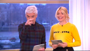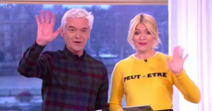 Her co-host, Phillip Schofield then wags his finger at the camera, telling the kids: “You better be good, we’re watching!”