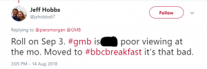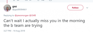 “Roll on September 3rd I’ve missed your wit in the mornings,” said another, while a third wrote: “Good, you’re back. GMB is falling apart.”
