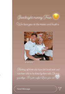 Joe wrote: “Goodnight Nanny Fran. Sleep well. I miss you so much already. I’m heartbroken.
