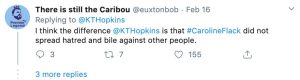 “I think the difference @KTHopkins is that #CarolineFlack did not spread hatred and the bile against other people,” a third wrote.