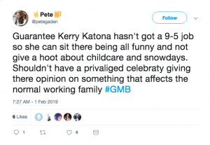 But several of those watching were furious at what they believed Kerry was saying, with one observer suggesting Kez is too ‘privileged’ to understand how weather issues affect most families.