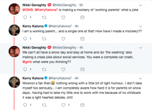 Kerry Katona has closed down critics on social media for accusing her of ‘making a mockery of working parents’ after the singer appeared on Good Morning Britain earlier today.