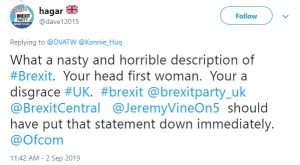 Another wrote: “What a nasty and horrible description of Brexit. @JeremyVineOn5 should have put that statement down immediately @Ofcom.”