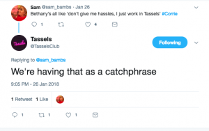 The spoof account only appeared last month, going by the handle @TasselsClub, but it’s gaining followers daily and everyone’s enjoying the cheeky tweets.